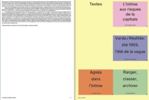 Ce livre aborde l’œuvre d’Agnès Varda sous un angle inédit, celui de la place primordiale de la cour-atelier de la rue Daguerre, lieu de vie et de création, depuis 1951 jusqu’à 2019, et plus généralement de Paris, où se croisent artistes et créateurs – tels que Catherine Deneuve, Delphine Seyrig ou Janes Birkin, et s’écrit la grammaire de son art.
