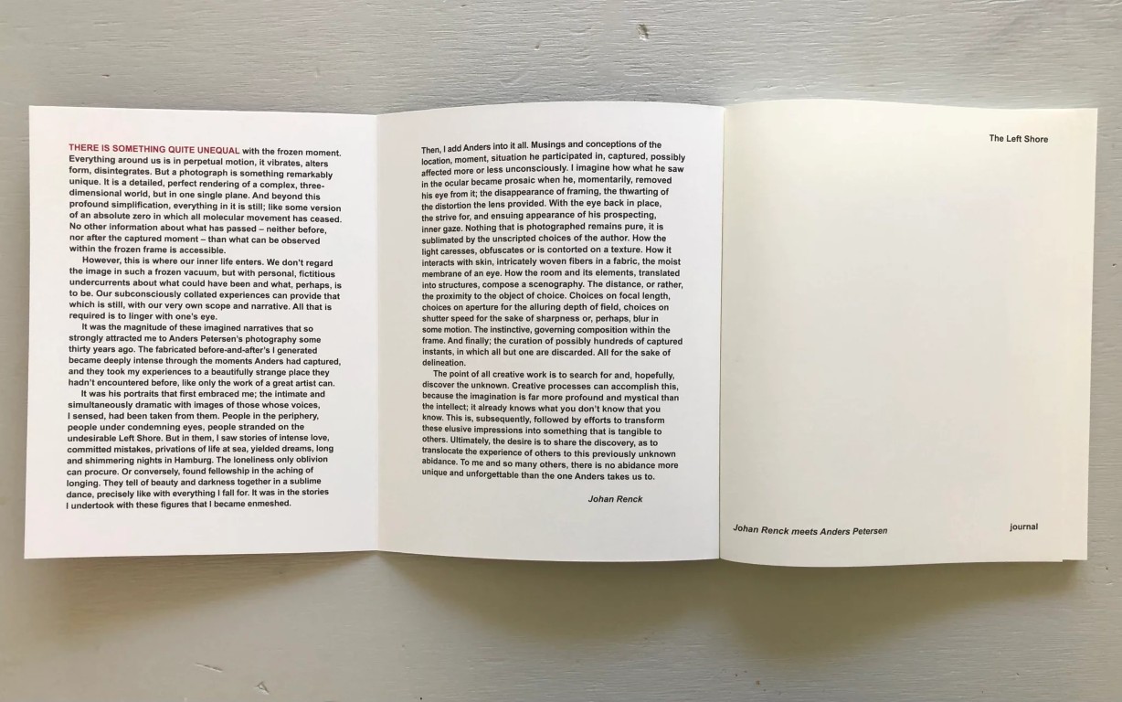 L’exposition et le film réunissent le photographe Anders Petersen et le cinéaste Johan Renck, qui a sélectionné des images de la production de Petersen de différentes périodes. Johan Renck est également responsable de la sélection des images dans ce livre. La réunion a été initiée par Angie Åström, qui est également conservatrice de l’exposition au Nationalmuseum.