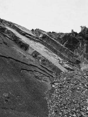 La série remet en question la nature des images elles-mêmes, n’offrant pas de topographie ou de typologie claire. Il s’agit plutôt d’une négociation permanente, où la surface, la texture et la matérialité évoquent les vestiges de l’histoire et les codes culturels sans succomber à une simple fermeture visuelle. Chaque image est animée par la présence et l’absence, créant une séquence où la forme est continuellement défaite et refaite. Dans L’Ombre des Belges, les photos ne se contentent pas de documenter ; elles incitent le spectateur à regar- der au-delà de ce qui est immédiatement visible, à se confronter à la nature fragile, stratifiée et changeante de la réalité ; texte de Serge Delbruyère, photos en n.b.
