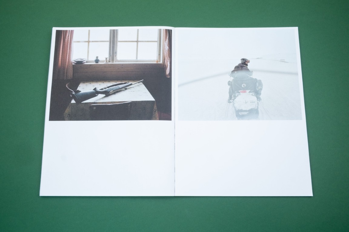 Only Barely Still works in the space between these enduring misconceptions, about women and about the Arctic, and offers a quiet counter-narrative that centres female presence and perspective. Printed on thin, translucent paper, the one-sided spreads leave facing pages blank – yet faint outlines of nearby images shimmer through, creating a quiet space for the reader. Alongside Lemblé’s photographic narrative is a chapter of historical images of women on Svalbard from the archives of the Norwegian Polar Institute, bringing forward a glimpse into the visual history of female presence.