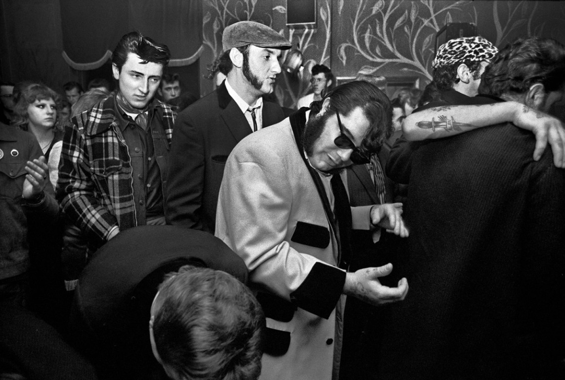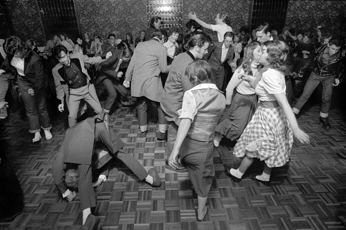 1956, il y a soixante ans, fut une année charnière pour les Teds. En septembre de cette année-là, le film de Bill Haley Rock Around the Clock arriva au Royaume-Uni. Avec cinq disques classés dans le Top 20, Haley était une star majeure, et le film fut projeté dans quelque trois cents cinémas à travers le pays. Il ne fallut pas longtemps avant que des émeutes n’éclatent. Au Trocadero d’Elephant and Castle à Londres, des sièges furent lacérés, et lorsque la police tenta de disperser une foule d’adolescents dansant et chantant, des bouteilles et des feux d’artifice furent lancés ; quatre vitrines furent brisées. Deux policiers furent blessés et neuf Teds arrêtés. D’autres troubles eurent lieu dans de nombreuses villes, notamment à Manchester et à Londres, tandis qu’à Birmingham, Blackpool et Belfast, le film fut interdit.