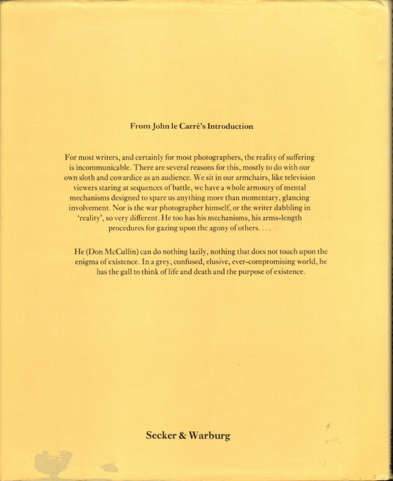 A powerful mixture of passion and compassion, this book truly penetrates the hearts of darkness and confirms Don McCullin’s position as the finest photographer in England and indeed as an artist of world-wide stature.