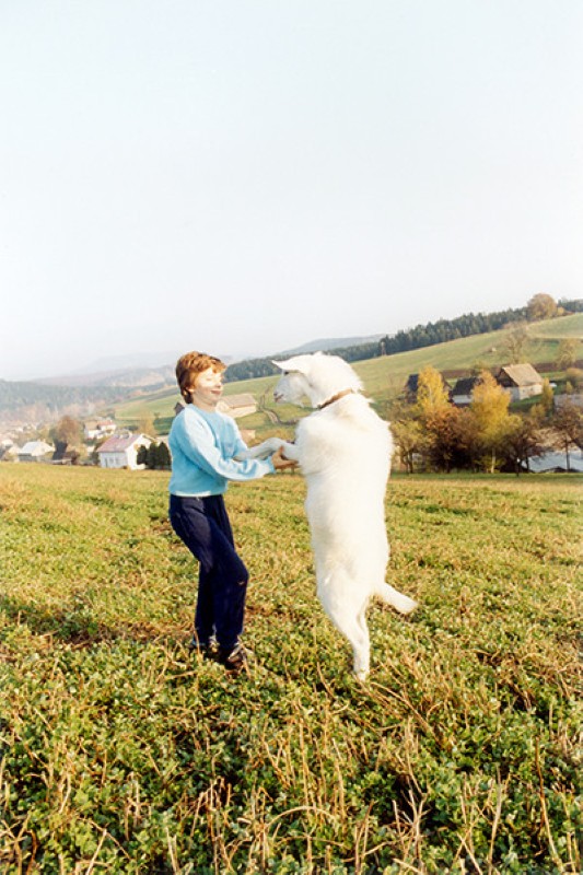 Her portrait series Female (1997–2000) brings out the individuality of women she encountered by chance in mostly urban settings. In the newly published series Bohdanka (2004–2025) she turns to ecological themes and presents the alternative way of life of a large family in harmony with nature. Set once again in Rokytník, the series reconnects with her artistic beginnings.