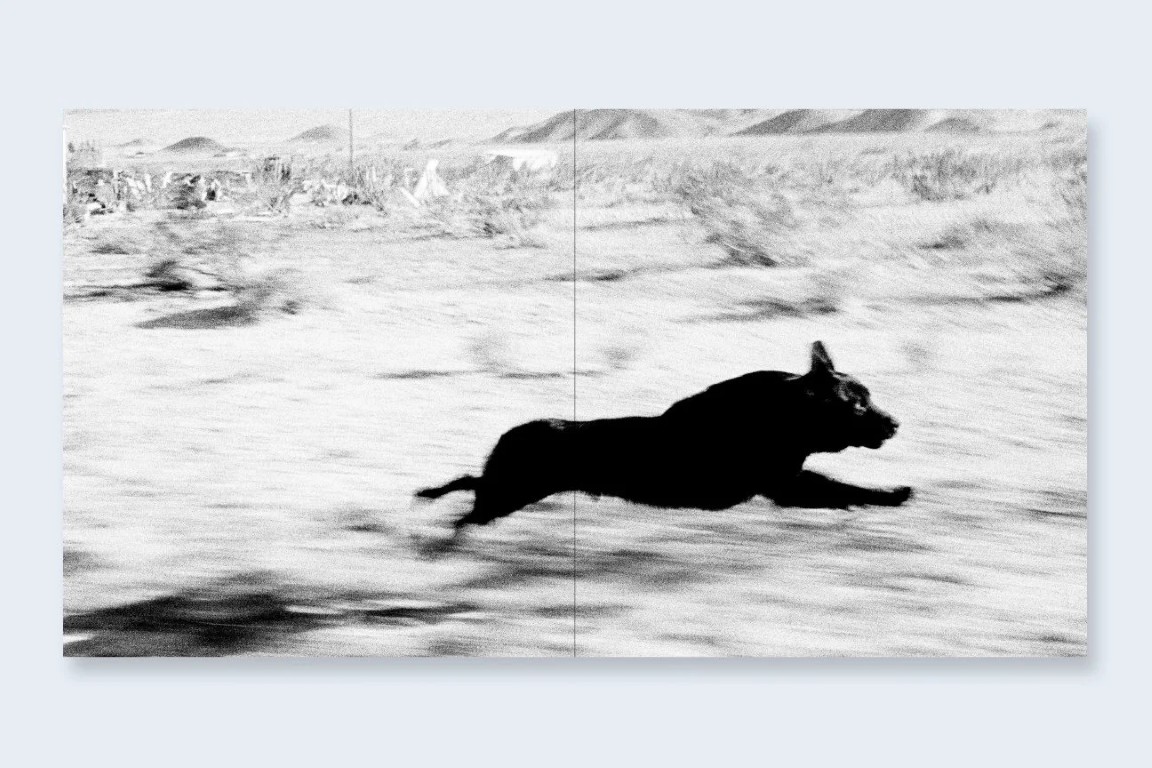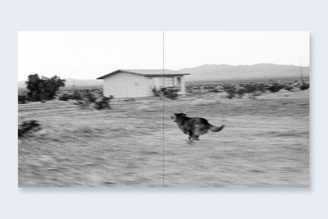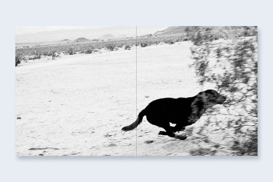 « De 1995 à 1998, j’ai travaillé sur une série de photographies de maisons isolées dans le désert, à l’extrémité est de la Morongo Valley, en Californie du Sud. En errant dans le désert, il arrivait parfois qu’un chien se mette à poursuivre ma voiture. Vers 1996, j’ai commencé à emporter avec moi un appareil 35 mm équipé d’un moteur d’entraînement et chargé d’une pellicule noir et blanc rapide et granuleuse. Le procédé était simple : lorsque je voyais un chien courir vers la voiture, je faisais la mise au point à l’avance et réglais l’exposition. D’une main sur le volant, je sortais l’appareil par la fenêtre et déclenchais, exposant de quelques images à une pellicule entière. J’avoue que je n’hésitais pas à faire demi-tour pour repasser devant une maison où un chien particulièrement enthousiaste s’était manifesté.