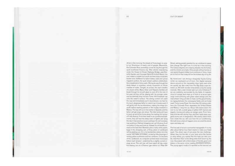 Featuring a foreword by acclaimed photographer Donald Weber and five reflective texts by Holm, HRTLND is a profound visual chronicle of our collective condition, offering a stark portrait of the times as of now. The object is a lay-flat softcover wrapped in a French poster jacket with a UTM world map printed on the back. The UTM map are the most used coordinate system in the context of military mission planning. In HRTLND it is highlighting the precise position of each image.