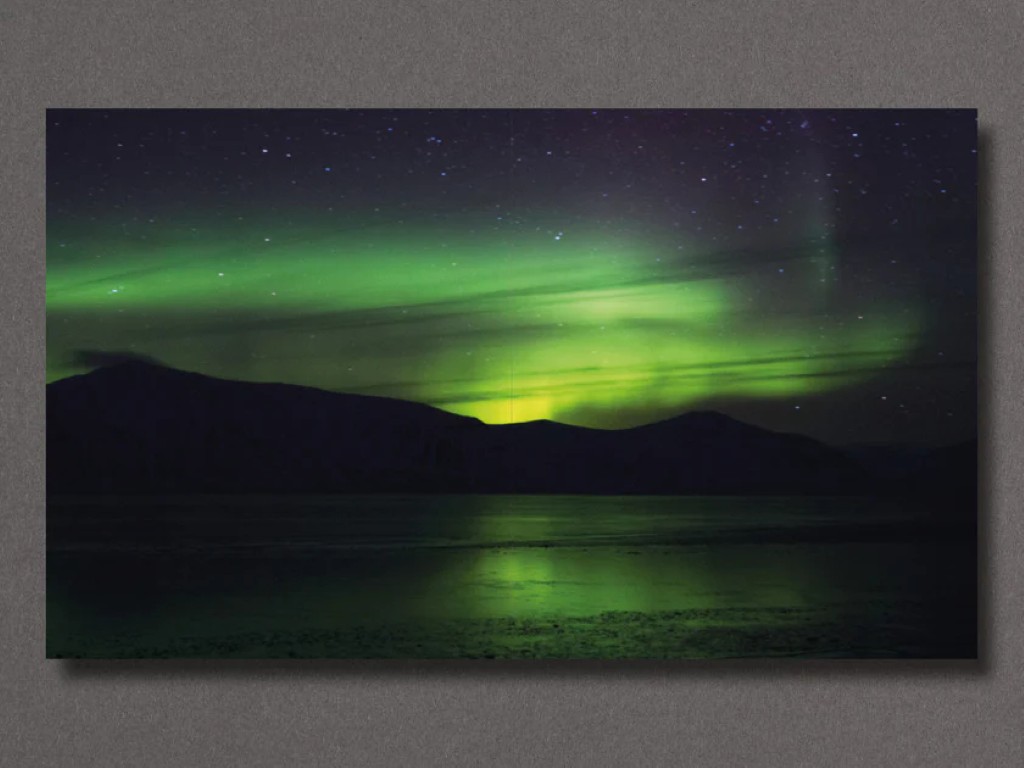Bevacqua’s imagery blends landscape photography with symbolic elements — like a red sweater marking human presence — alongside polaroid experiments and surreal visions of the Arctic moon. Her work reflects on memory, solitude, and the fragile balance between humans and nature.