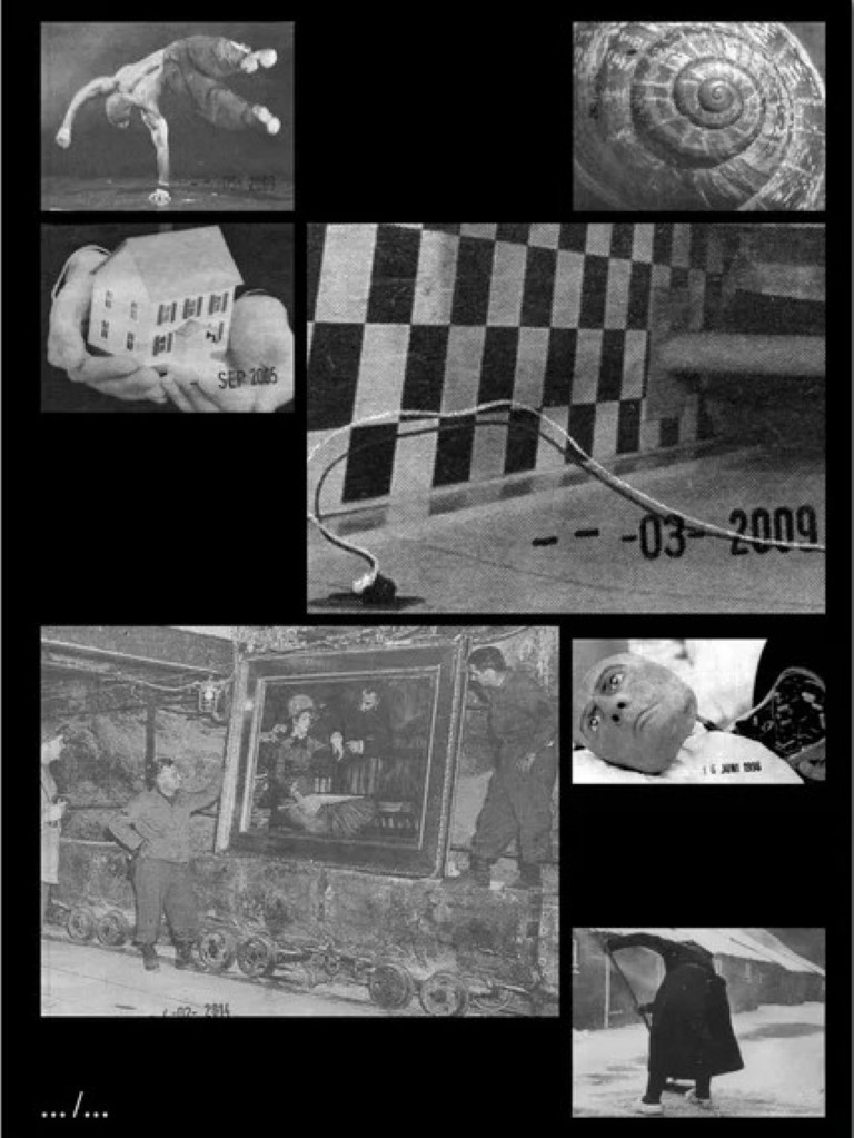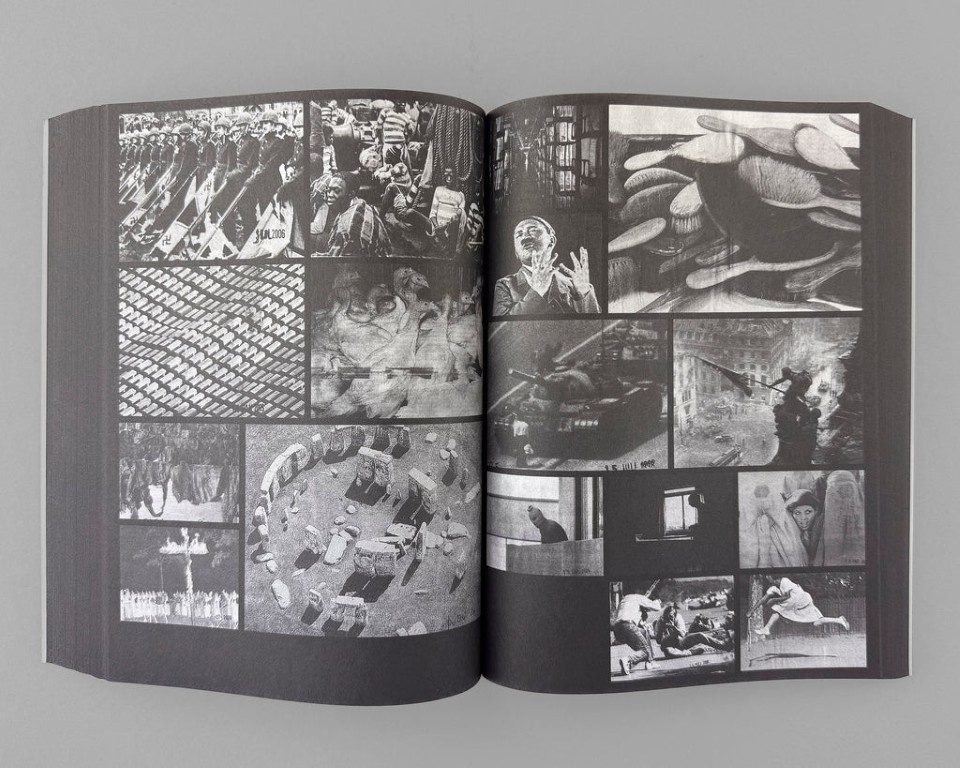 Fusion explores how we interpret images, grouping photographs by visual or symbolic qualities: featuring categories like shadows (simulacre), icons (icon), double images (glende), traces (trace), as well as those that are surreal (alien), aesthetically compelling (beauty), or energetically charged (move or MUD, for “multi-use dimension”). Mindwaves, by contrast, is structured around formal visual qualities: packaging (emballage), texture (such as Fourche, Circle, Amorf, or Geometric), and connection (connection, including subcategories like Human, Realea, and Strip). The Human Interest section (Icarus, Verticals , WWEB and Trümmerfrauen) contains images and notes focused on human emotion, empathy, and compassion ; texts by Giorgia Basch, Barbara De Coninck, Zoë Gray, and Philippe Van Cauteren.