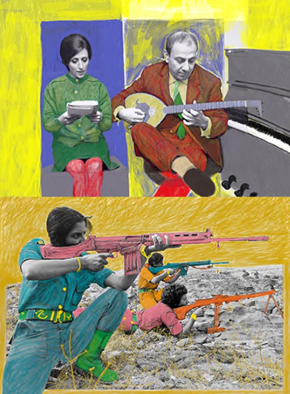 Le bonheur tue est un projet artistique né de la nécessité de transformer des photographies de presse illustrant différentes périodes de l’histoire du Liban. La double explosion du port de Beyrouth, en 2020, a ravivé la douleur et l’angoisse de tout un peuple, ranimant les traumatismes d’un pays régulièrement meurtri. L’artiste, ayant grandi en tentant de fuir ces « images fantômes », cherche désormais à se les réapproprier en coloriant et en manipulant ces clichés, pour mieux comprendre et exorciser les souffrances du passé.