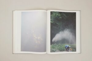 The artist captures her immediate environment and her family as well as more spectacular subjects. In this book, she presents a dialogue between images from Iceland and Japan, focusing mainly on water: clouds, rain, rainbows, ice, snow, torrents, mist… The book is constructed by playing with the idea of transparency, which is so dear to his heart. The images are printed on very fine Japanese paper and are gradually revealed. White pages, like silences, punctuate the sequences. The cover, meanwhile, is splattered with shards of silver that reflect the light.