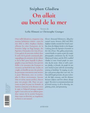 Onze mille kilomètres, cinquante-cinq stations balnéaires visitées : entre les étés 2022 et 2023, Stéphan Gladieu sillonne les côtes françaises, de la frontière belge au Pays basque, des Pyrénées-Orientales à la Côte d’Azur. Cette galerie de portraits réalisée dans le cadre de la grande commande photographique du ministère de la Culture et de la BnF, pour laquelle le photographe a reçu une bourse, lui a permis d’aller à la rencontre des Français en vacances, au bord de la mer. Seules, en couple, en famille ou avec des proches, les personnes rencontrées sont invitées à poser librement, avec en arrière plan le décor environnant. Aucune mise en scène, aucun artifice, chacun joue son propre rôle. Pour ces portraits en pied, la pose est frontale, la lumière constante et la distance entre le sujet et l’objectif presque toujours égale. Cette série est un tableau grandeur nature de la société française, dans toute sa diversité, sa singularité, sa fierté et son naturel ; textes de Leïla Slimani et Christophe Granger, photos en couleurs.