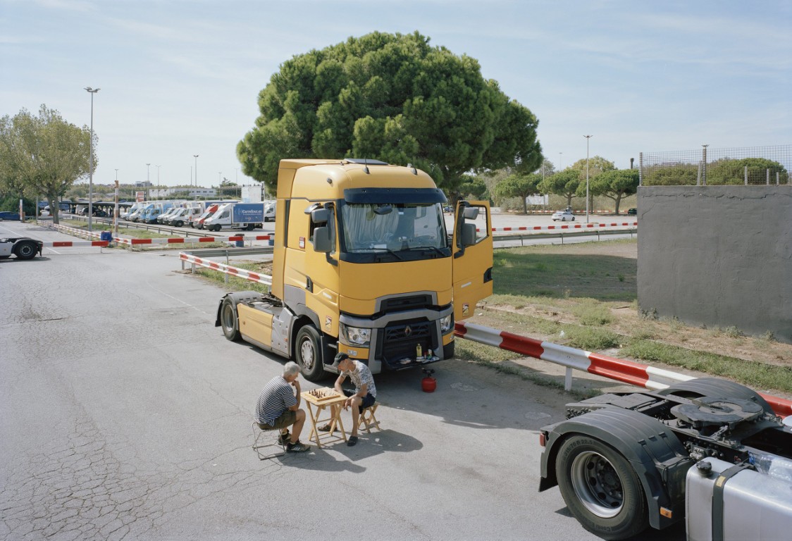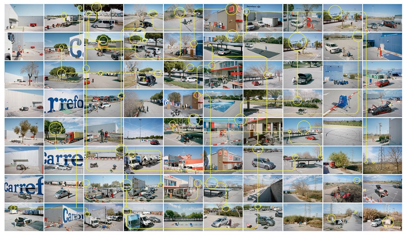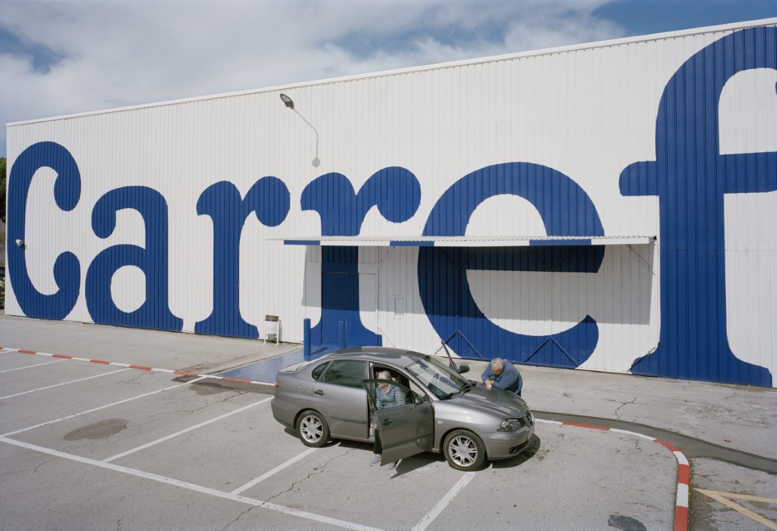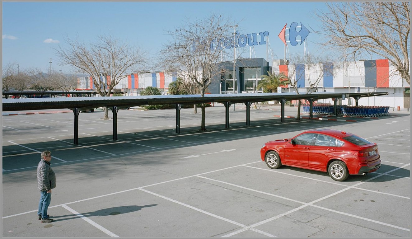 Pendant dix ans, chaque dimanche ensoleillé à midi, Txema Salvans a photographié, depuis le toit de son van, les personnes qui se rassemblent sur le parking du supermarché Carrefour, à la périphérie de Barcelone. Cet improbable lieu de loisir, à la fois vide et absurde, accueille des routines pratiques, des pauses silencieuses et une quête discrète de suspension du temps. Avec patience et constance, le photographe transforme l’ordinaire en une symphonie visuelle qui reflète les marges du loisir contemporain, la vie en périphérie urbaine et la poétique cachée du quotidien.