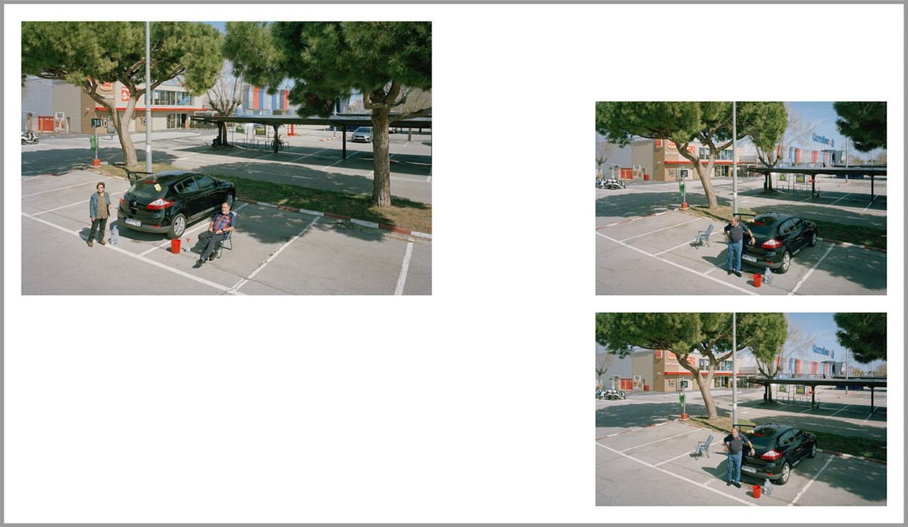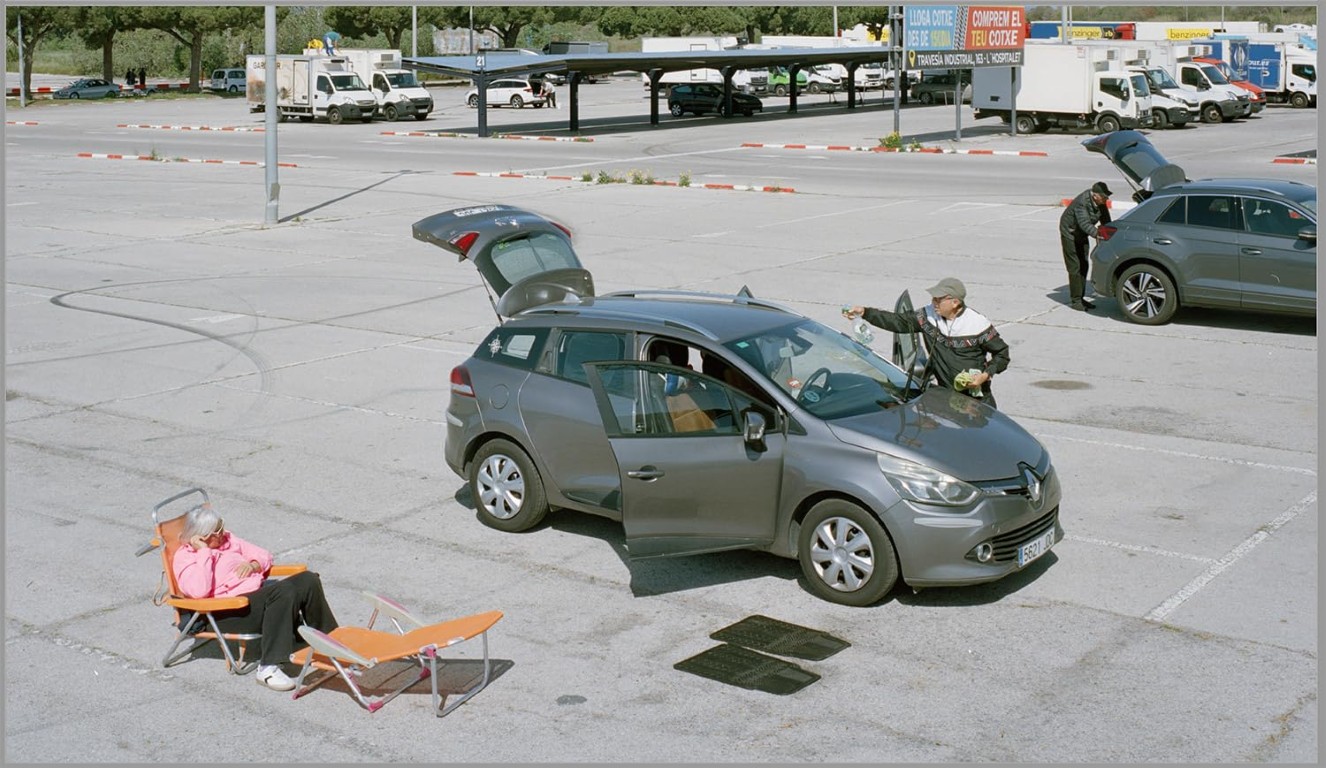 For ten years, every sunny Sunday at noon, Txema Salvans has photographed from the roof of his van the people who gather in the supermarket Carrefour car park on the outskirts of Barcelona. This unlikely leisure ground, both empty and absurd, hosts practical routines, quiet breaks, and a silent quest to suspend time. With patience and consistency, the photographer turns the banal into a visual symphony that reflects the margins of contemporary leisure, life on the urban periphery, and the hidden poetics of the everyday.
